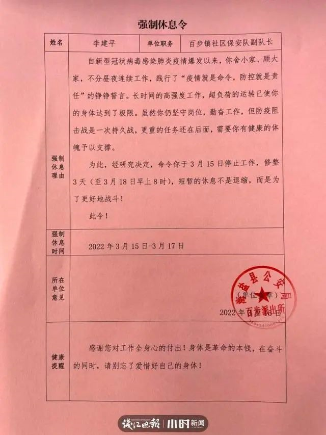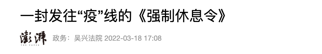 每位一线干部职工原则上一周至少休息一天;参与疫情防控通宵工作的一线干部职工,第二天必须合理安排休息——3月21日,浙江温州市新冠疫情防控领导小组办公室、市委组织部发布《关于在疫情防控期间关心关爱干部做好超负荷工作人员强制休息的通知》要求各地各单位在不影响正常防控工作的前提下,对“应休尽休”人员实行强制休息。