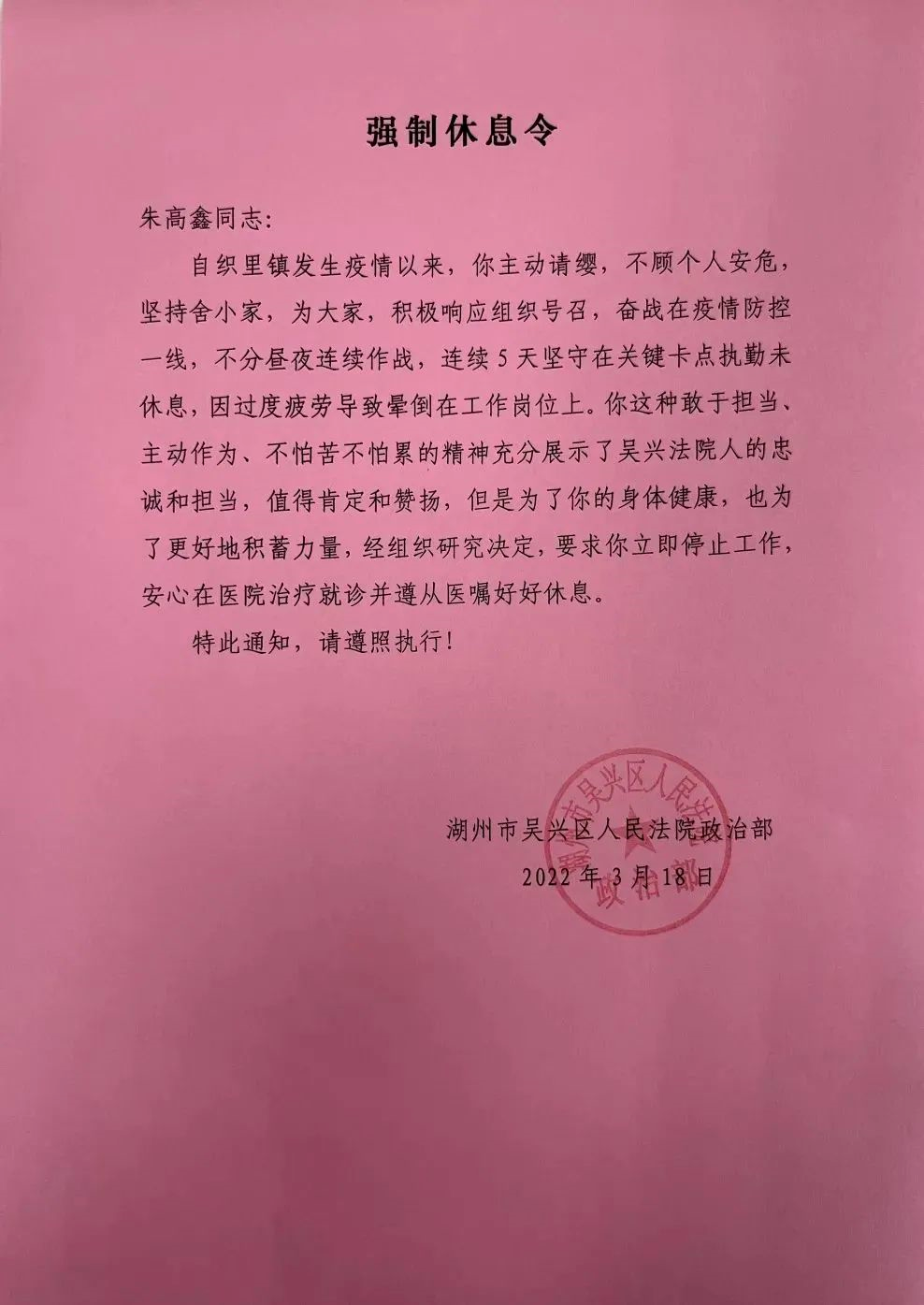 据了解,温州近期发现数起新冠肺炎确诊病例,在高强度的抗疫工作中,不少党员干部出现声音嘶哑、显露疲态等情形。故该市发布上述通知,缓解一线抗疫人员的身心压力。