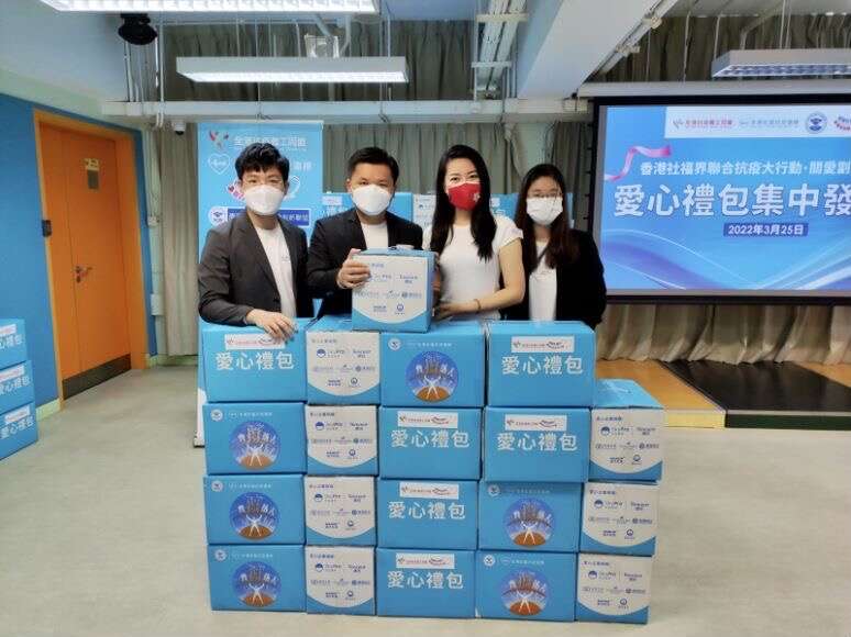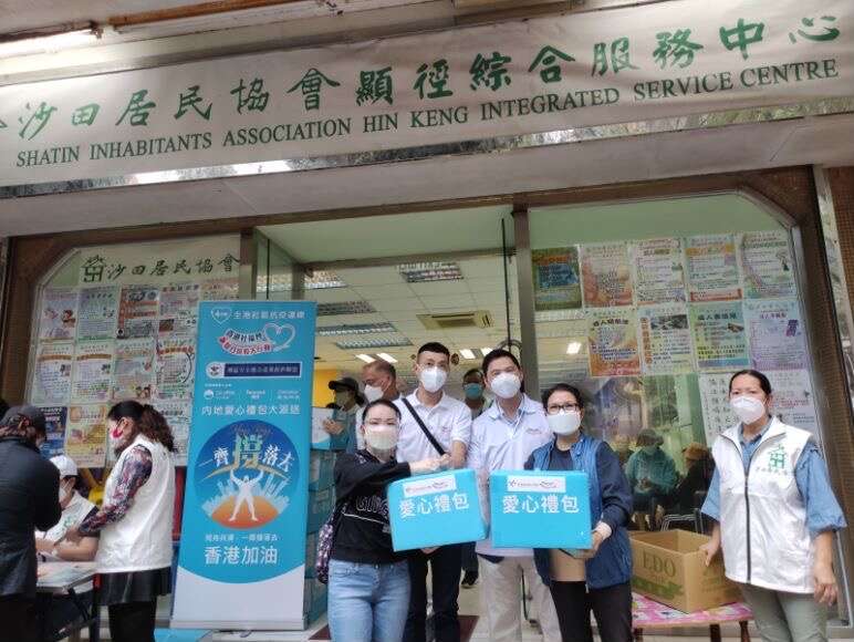 当日,“香港社福界联合抗疫大行动”召集多个社团和不少爱心人士参与了“爱心礼包”派发。湾区安全应急创新联盟在港义工、腾讯义工均身体力行肩负起重任,携多箱抗疫“爱心礼包”,马不停蹄地走访各大厦,穿梭于狭窄的走廊,及时为市民送上防疫物资和慰问。