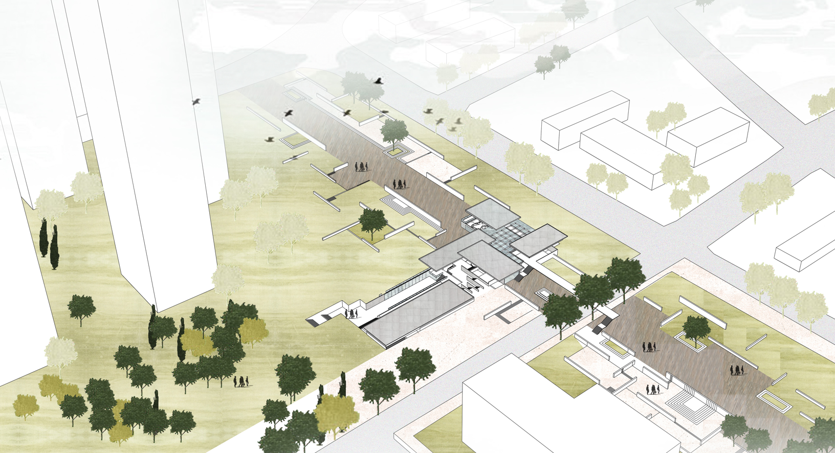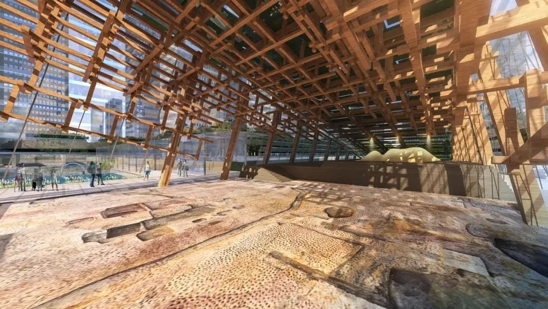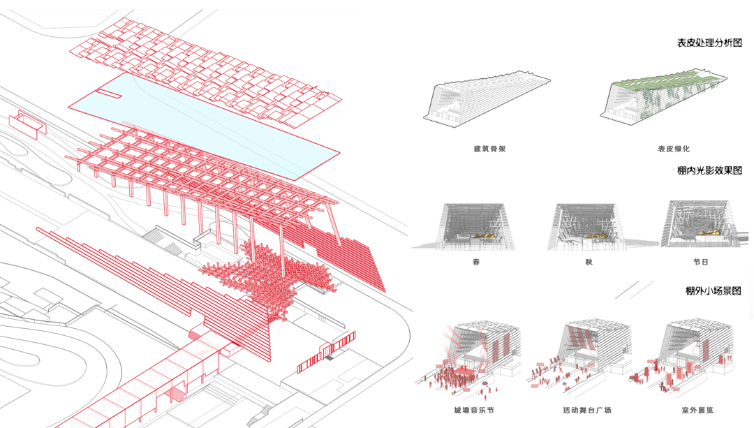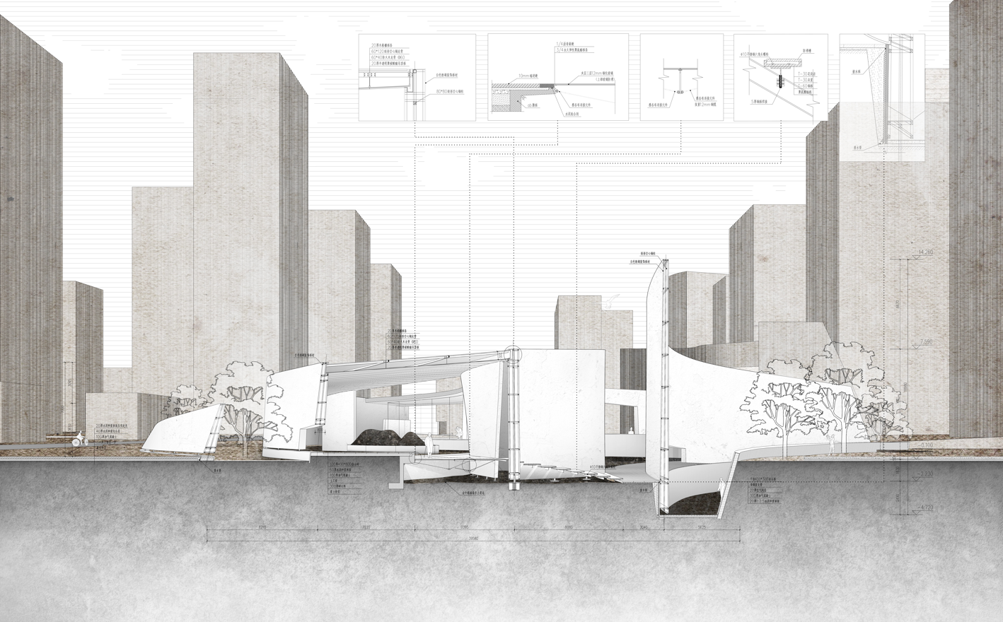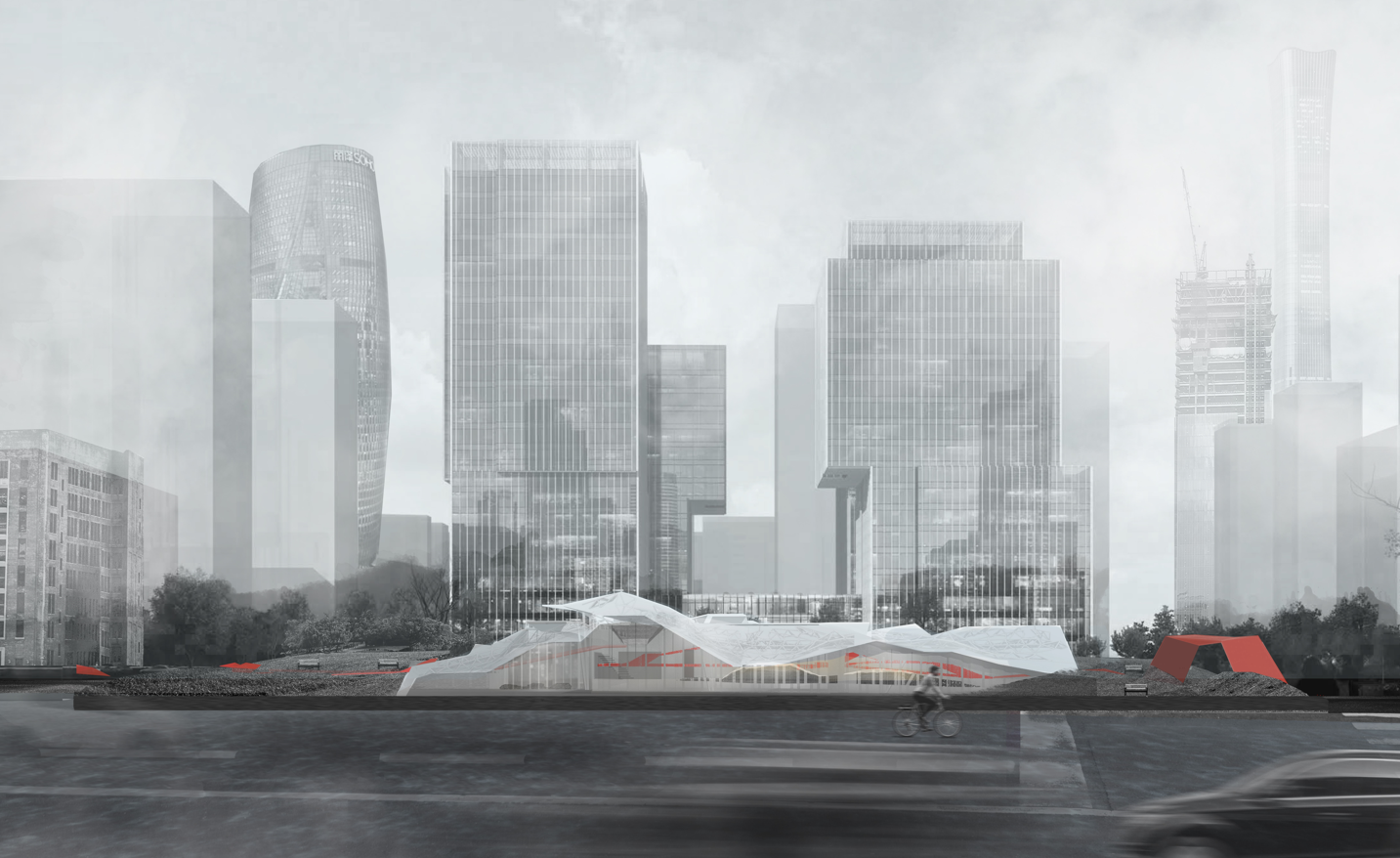 遗址保护带略微抬升,暗示城墙范围、保护地下遗存;源于城墙意象的保护棚也是新的城市功能发生器,为丽泽、丰台乃至北京提供公共活动场所和文化展示窗口。