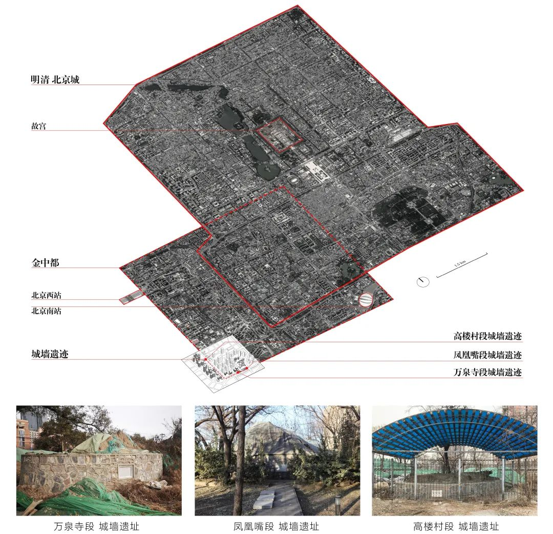 金中都城遗址公园“观复新园”,力图让人们在专程的游览中与城市日常生活的反复阅读中都能同等地感知金中都城墙的历史存在。凤凰嘴万泉寺遗址保护设计“旧城纪传”,让游客在观看不同遗址的过程中感受金中都城墙的历史变迁。