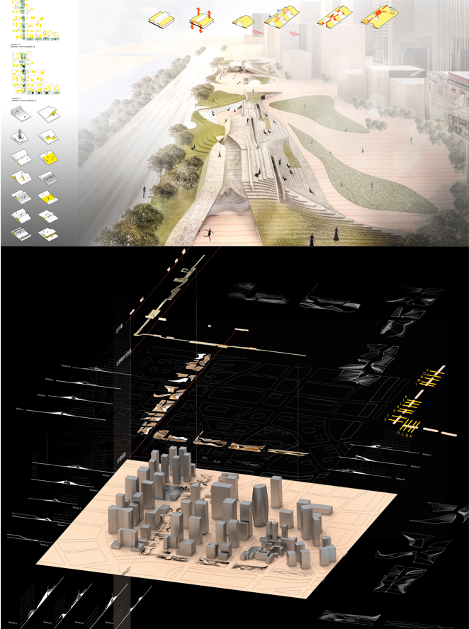 基于前期的研究与探讨,教学团队教师联合天津大学建筑设计规划研究总院、NEXT建筑事务所继续描绘中都未来,提出更具可行性的概念方案。