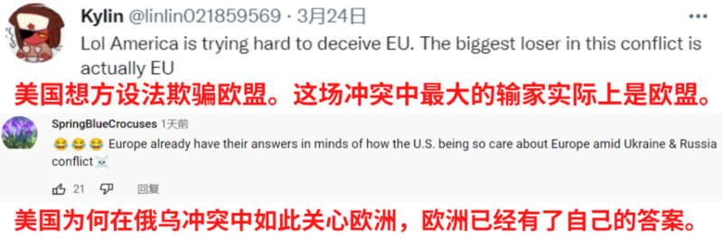 俄罗斯是世界石油、天然气、粮食、金属矿产的重要供应国。欧盟进口天然气中约40%、进口原油中约30%来自俄罗斯。对欧洲来说,制裁俄罗斯的同时也推高了能源价格、粮食价格,危及欧洲自身粮食安全,增加了欧洲金融市场不稳定性,导致欧洲经济信心下滑。这一切,真是“多亏”了欧洲的好盟友——美国。