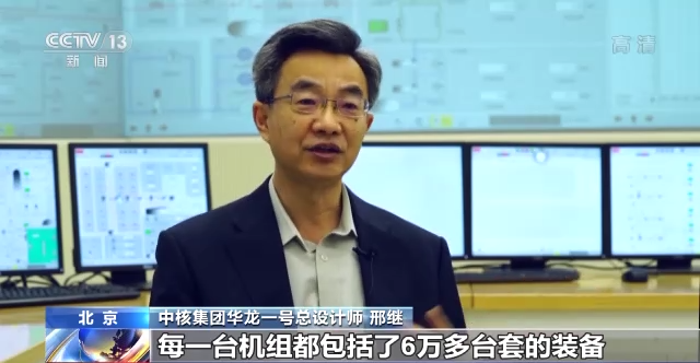 中核集团华龙一号总设计师 邢继:华龙一号的首堆工程,每一台机组都包括了6万多台套的装备,参与整个工作的供货厂家有5300多家,正是因为有一个强大的中国的制造业在支撑着华龙的自主研发,我们才能够实现华龙自主技术在工程上顺利应用。
