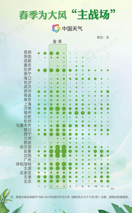 春季为大风“主战场” 21个省会级城市春季大风日数最多