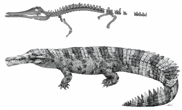 中华韩愈鳄正型标本三维重建和艺术复原图。