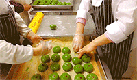 五丁青团:海参、虾仁、冬笋、鸡肉、猪肉混合搭配,每一个团子的诞生,都是满满的心意。