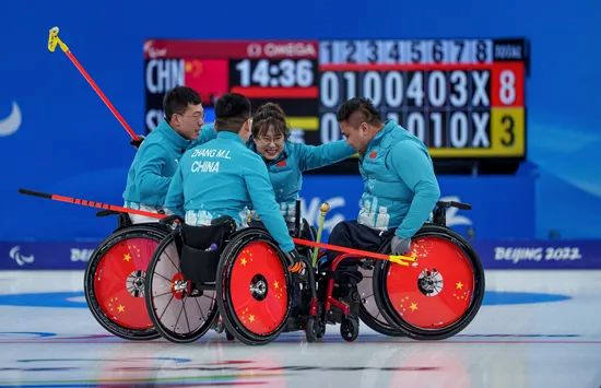2022北京冬残奥会轮椅冰壶决赛,中国队8∶3战胜瑞典队,成功卫冕。