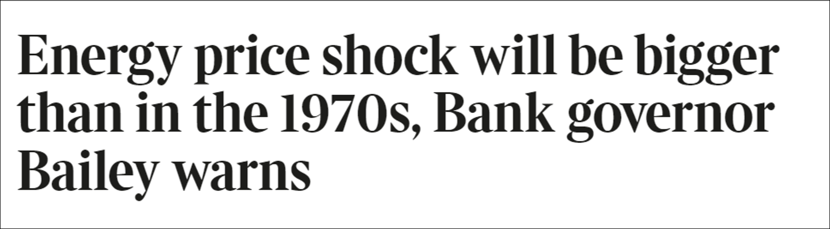 据《泰晤士报》当地时间3月28日消息,英国央行行长安德鲁·贝利警告称,今年英国家庭面临的能源价格冲击,将比上世纪70年代石油危机期间的任何时候都要大。