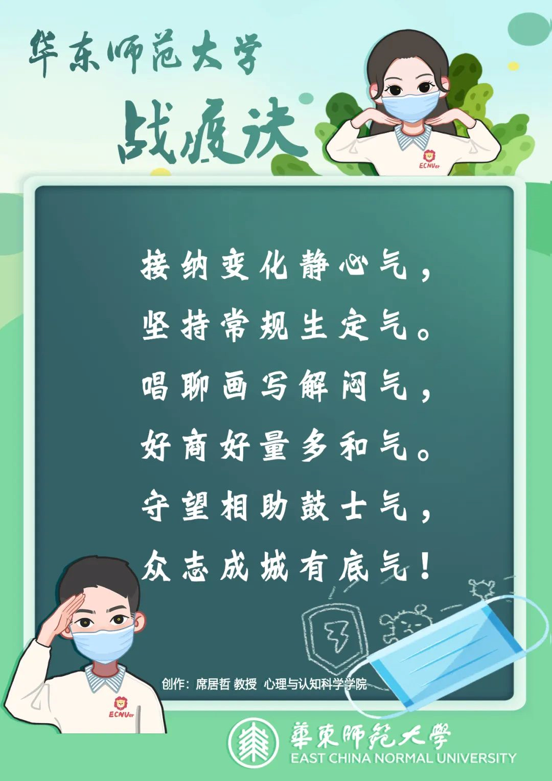 针对同学们目前的心理状况,华东师范大学心理与认知科学学院副研究员王继堃结合战疫诀给出了以下建议: