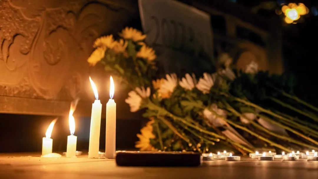 现场的鲜花和蜡烛