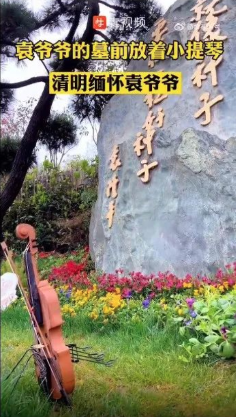 袁爷爷的墓前放了把小提琴