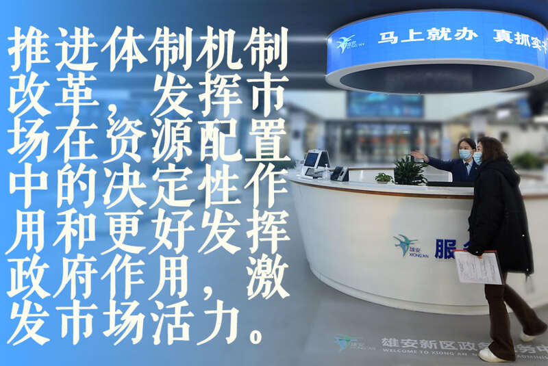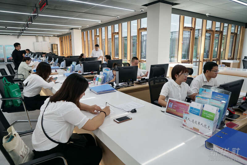 群众在雄安市民服务中心内办理业务(2019年1月17日摄)。2021年,雄安新区提出“一窗受理、一网通办、一次办结、一枚印章管到底”的“四个一”审批模式,推动技术、人才、资金等要素资源集聚。