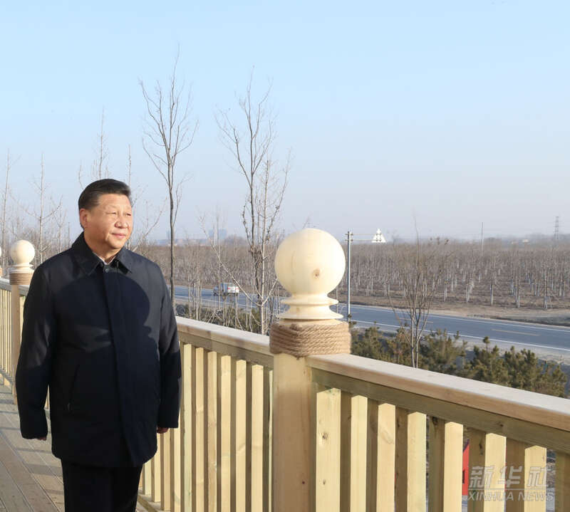 2019年1月16日至18日,习近平在京津冀考察,主持召开京津冀协同发展座谈会并发表重要讲话。这是1月16日下午,在雄安新区“千年秀林”大清河片林一区造林区域,习近平登上秀林驿站二层平台远眺林区全貌。