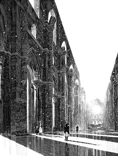 今年是塔可夫斯基诞辰90周年,这几天又看了一遍《乡愁》。一个全新的感受出现了:以前看这部电影总有点看“雾中风景”的感觉,这一次却清晰起来,了了分明,所有以前那些似是而非的疑问都不再成为问题。这并非因为画质得到提升,而是一个伟大艺术家的作品必然具有重复观看性,在生命的不同阶段去观看会得到不同的体悟。这一遍观看让我理解到一件事情,那就是塔可夫斯基必然要去欧洲拍片,尽管他知道这可能会带来苏联和西方双重的误解甚至责难,即便他有一个不错的意大利制片人。而这种必然性是由塔可夫斯基电影的文化品格决定的。