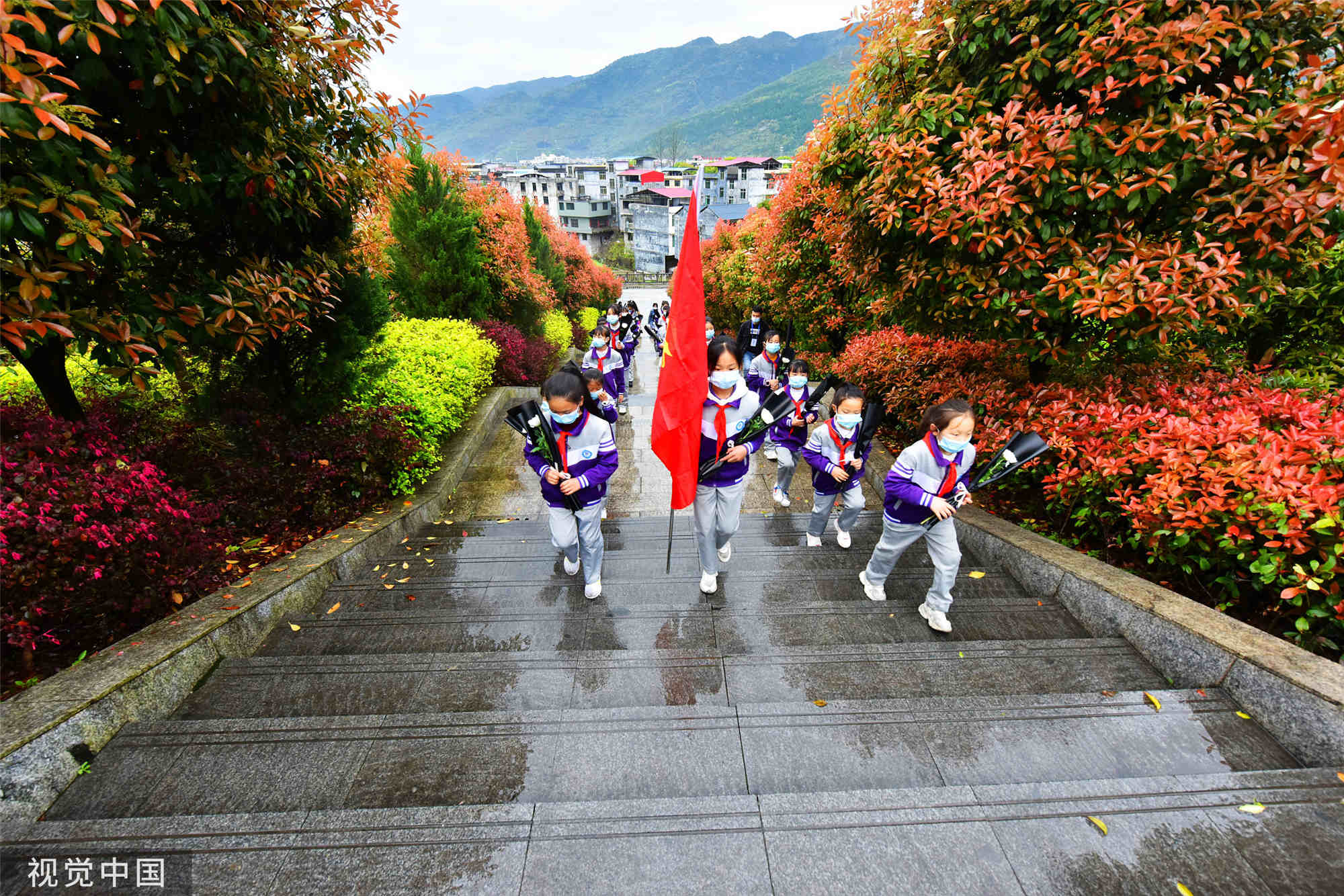 2022年3月31日,重庆市酉阳土家族苗族自治县龙潭镇龙潭希望小学开展“缅怀先烈 争当好少年”清明祭扫活动,该校3-5年级部分中队代表及教师参加祭扫。