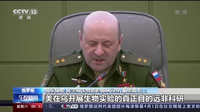 3月31日,俄军辐射、化学和生物防护部队司令基里洛夫召开新闻发布会。基里洛夫说,俄方已经掌握了相关证据,证实美国军方直接参与了乌克兰境内的生物实验项目。