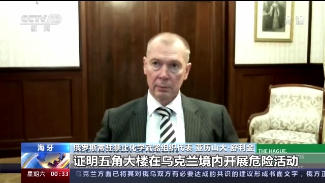 俄罗斯常驻禁止化学武器组织代表 亚历山大·舒利金:我们收到了一些文件,证明五角大楼在乌克兰境内开展危险活动,尤其是研发生物武器,我们对此很担忧。针对五角大楼在乌境内进行的罪行,我们正寻求展开国际调查。