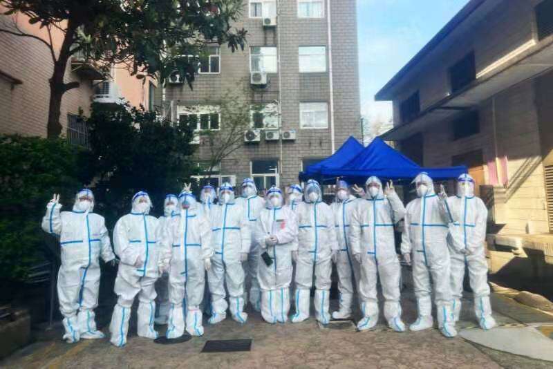 今天我依然被编入核酸检测组,有之前的志愿服务经验积累,这次主要负责人员编组和配合医生上门为不方便下楼的人员做检测。志愿者分楼层定点位,逐层逐户引导,最大限度减少居民互相接触,排队划定两米间隔线,我负责每10人编组,提醒注意事项,管控现场秩序。