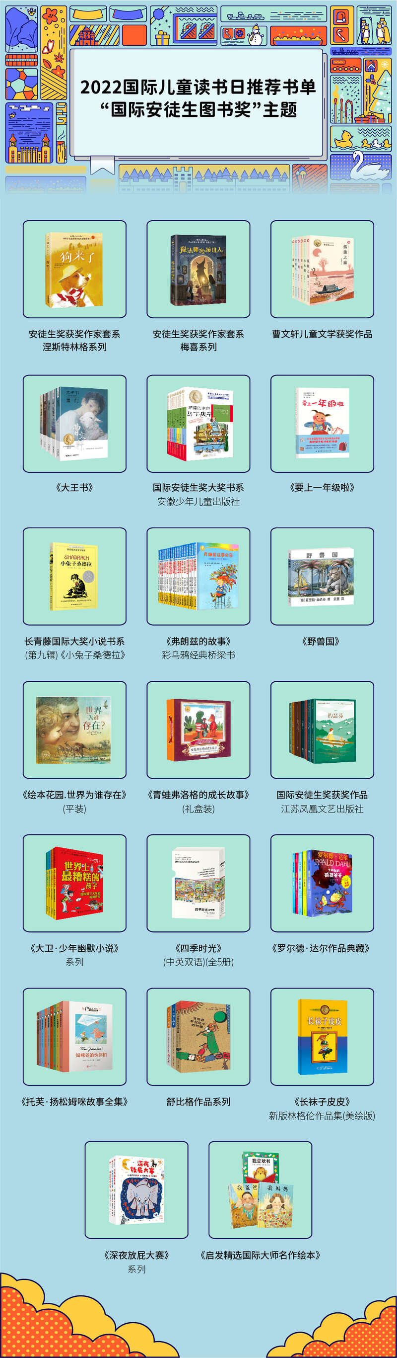 “国际安徒生奖大奖书单”,均系历届获得过国际安徒生大奖的作者的出版作品,涵盖儿童文学、绘本等多种儿童读物形式。克里斯蒂娜·涅斯特林格、罗尔德·达尔、莫里斯·桑达克这些如雷贯耳的儿童文学大师的名字,都在书单之中。
