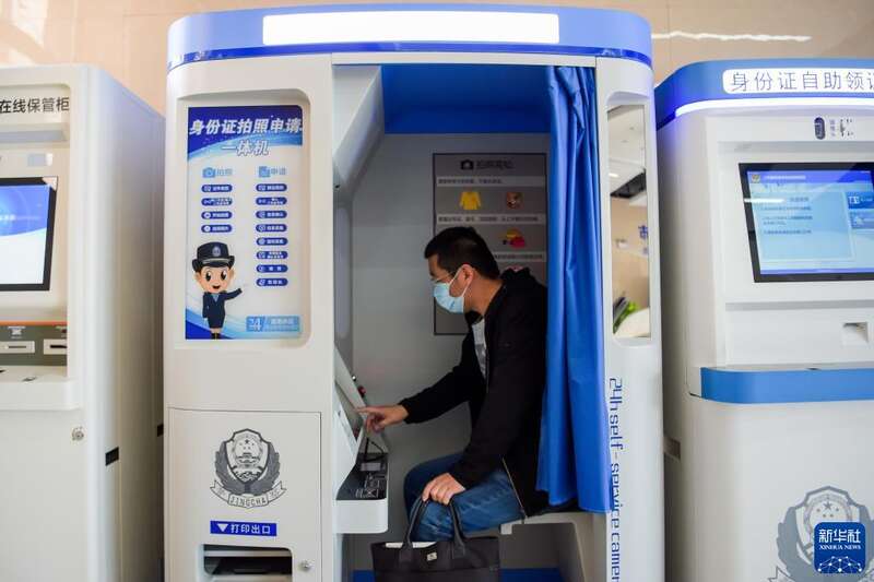 4月2日,在位于玉泉区政务服务中心的“24小时政务服务自助超市”,一位市民在自助办理身份证业务。