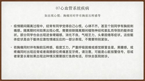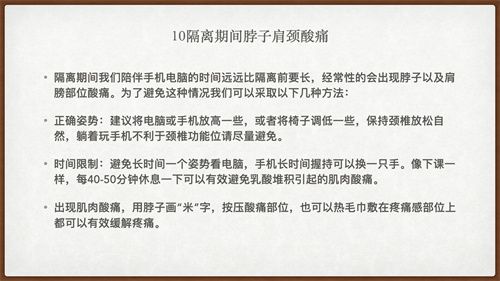 澎湃新闻记者从应对处理方案中看到,其涉及皮肤类疾病、眼部疾病、耳部疾病、口腔疾病、呼吸道感染、消化系统疾病、心血管系统疾病、肾脏疾病、失眠抑郁焦虑状态、隔离期间脖子肩颈酸痛十项。值得一提的是,方案从专业、经验入手,有专业性也有人情味。