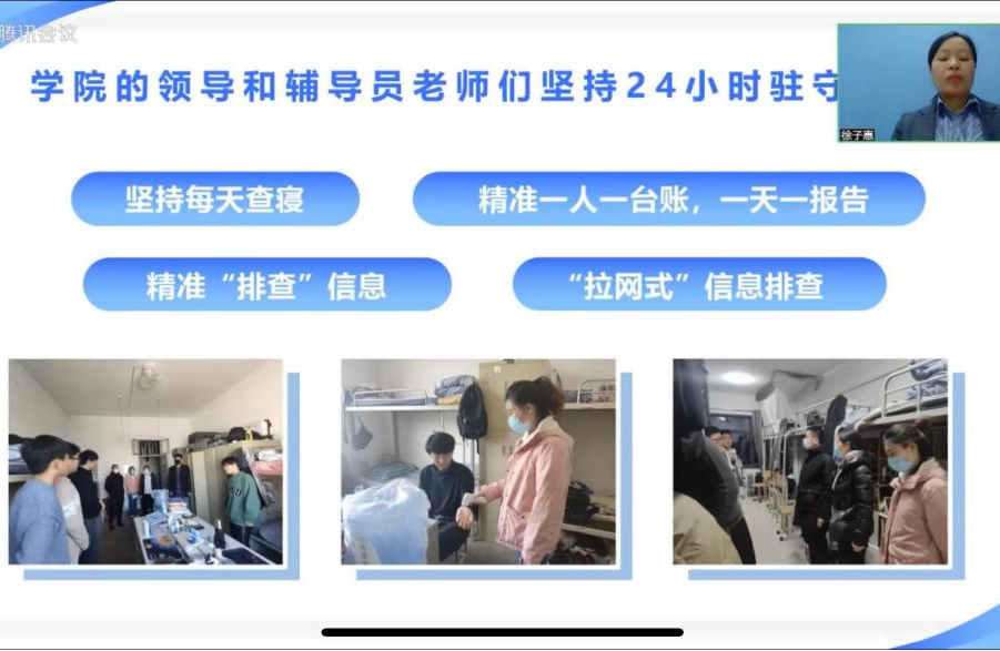 外国语学院研究生辅导员赵丽娜深入研判研究生群体状况,推行扁平化快速信息传达机制,构建研究生寝室精准防控图。研究生辅导员鄂丽华组织开展“我是党员”行动计划,成立党员志愿者预备队,建设研究生疫情防控梯级层次,搭建应急处理机制。