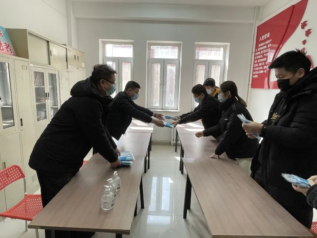 体育部研究生辅导员贺天麟组织机关党员自发购买防疫口罩、体温计、消毒手套以及消毒水等物资,为48个学生宿舍送去关怀。