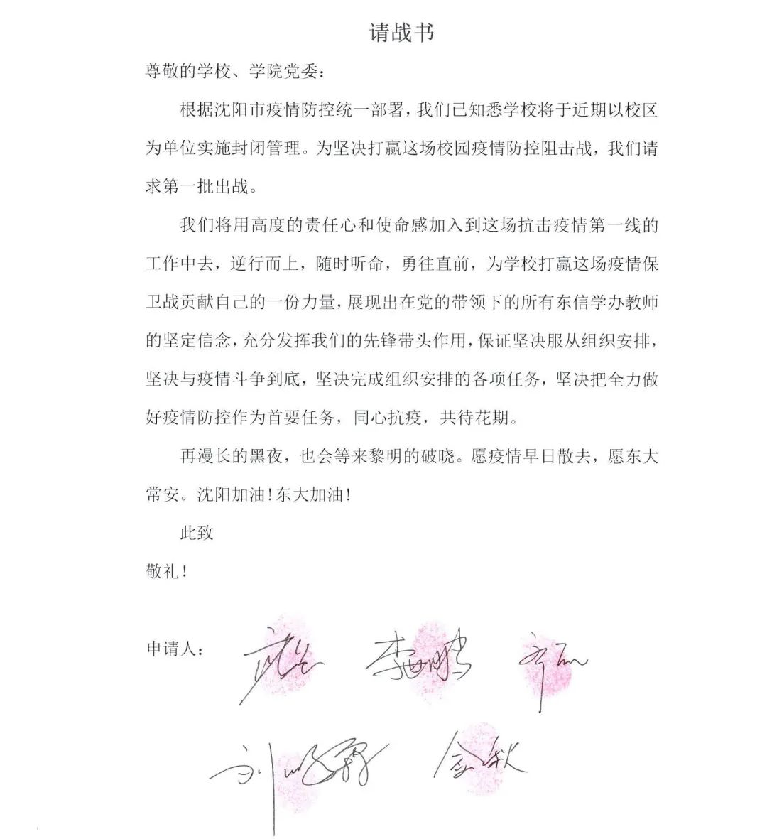 信息学院研究生辅导员向学院全体学生发出“筑牢防线,共克时艰,全力打赢疫情防控阻击战”的倡议,充分发挥党支部战斗堡垒和党员先锋模范作用。