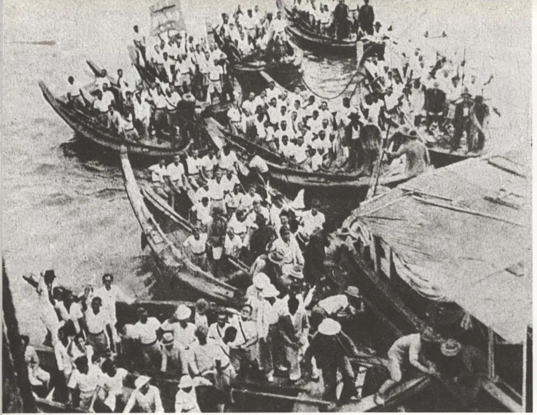 陈嘉庚先生与集美华侨补习学校的学生在一起