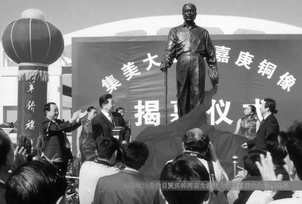 中央政治局原常委、全国政协原主席贾庆林为集美大学陈嘉庚铜像揭幕
