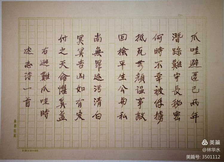 这首写于1944年4月《述志》一诗,是嘉庚先生为数不多的存世诗篇。那时日寇发动太平洋战争,侵占东南亚国家,陈嘉庚“避祸”于爪哇匿居。此诗附在 《胜利可期》一文之后,诗前有一小序:“胜利未达,敌寇未败,潜踪匿迹,安危未卜,余惟道生死于度外,作俚诗一首以见志。”这是一首近乎“绝笔”、总结作者大义凛然“一生”的“正气歌”!