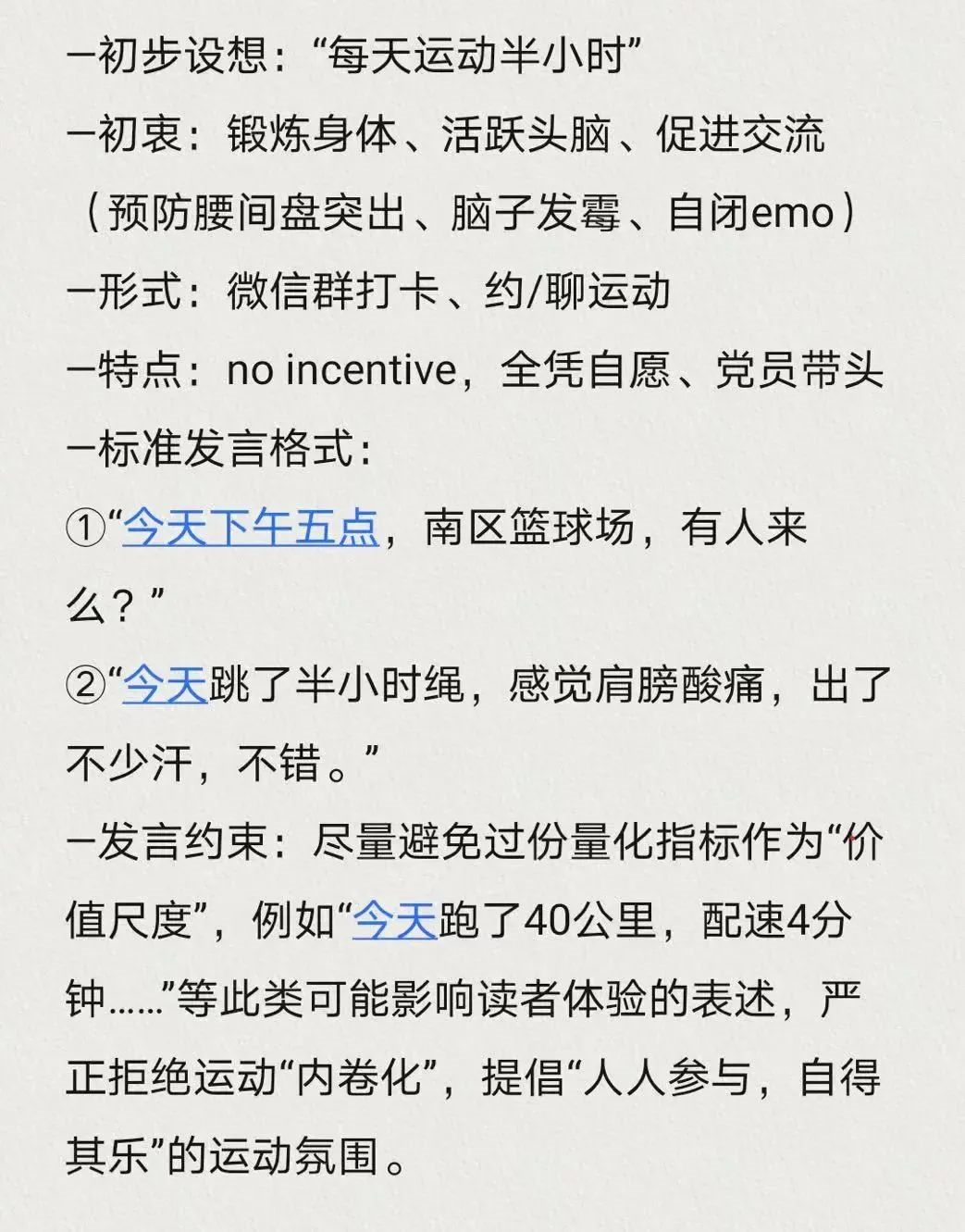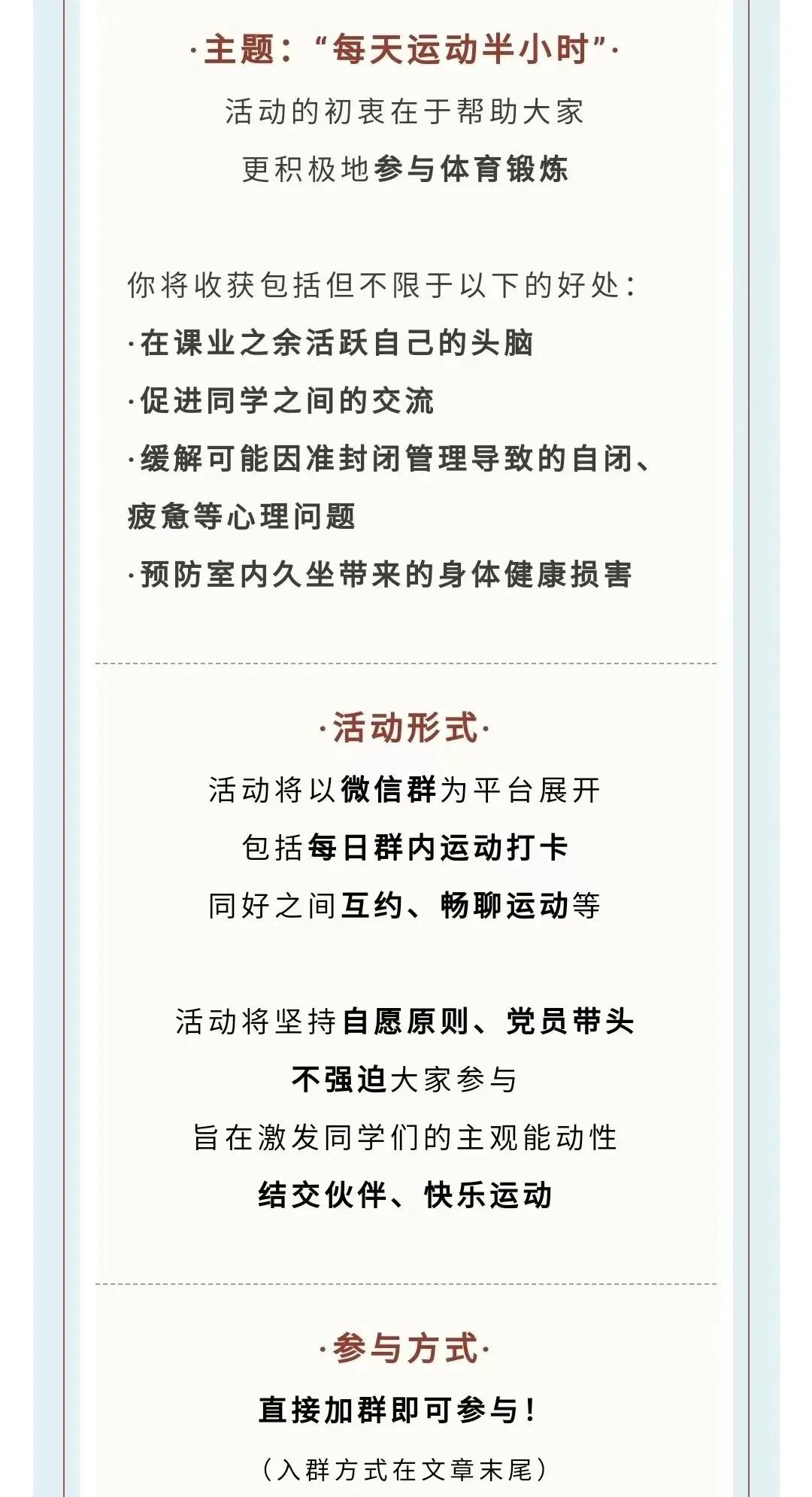 仲飞宇在班级公众号发布“每天运动半小时”活动