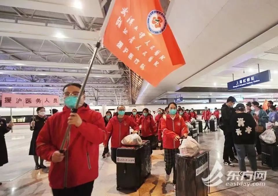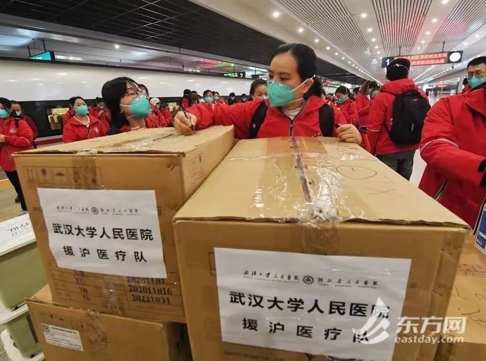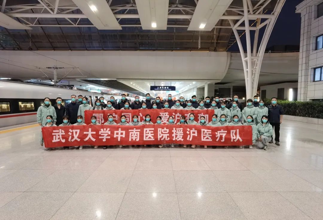 上海抗疫阻击战牵动人心。4月3日,来自武汉大学人民医院、武汉大学中南医院、武汉大学口腔医院的医护人员火速集结,从武汉站出发,紧急驰援上海。