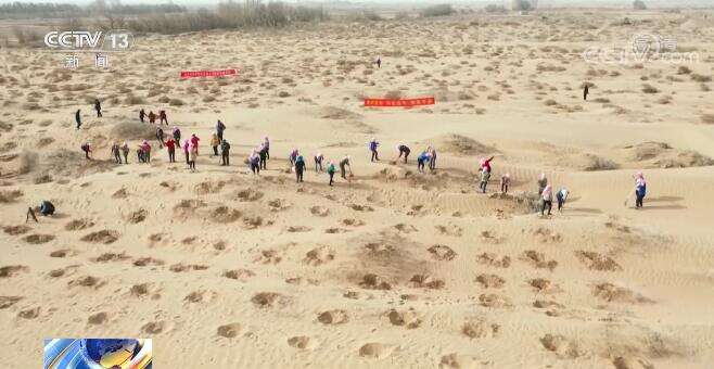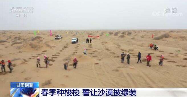 央视网消息:近日,在位于腾格里沙漠和巴丹吉林沙漠中间的甘肃省民勤县,当地的群众和全国多省份的志愿者们来到这里植树。与一般植树不同的是,他们种植的是只有指头粗细的梭梭苗,浇的水则是数十公里外用罐车拉过来的水。劳作在荒凉的沙漠上,大家仍旧干得热火朝天。