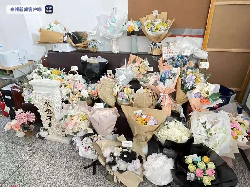 据介绍,从今年3月中旬开始,该校美术学院的206名大一学生,以支部为单位组建了33个花束手作团队,参与“我为英雄绘彩虹”活动的创作。在专业教师的指导下,学生们用皱纹纸、针织、蚕丝、丝带等材料为烈士们制作祭奠花束,这些花束既有环保的理念,又不易凋谢。从花蕊、花瓣、花茎、枝叶的绘制,到配色、插制成束,每一个环节同学们都力争精益求精,一朵花的制作时间平均在2~3小时,学生们将自己的创意和设计理念融入作品,每一朵花都表达着学生们对烈士的浓浓敬意。同学们还亲手书写下一张张卡片,置于每束花束之中,传达缅怀与敬仰。