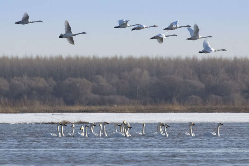小天鹅翔集科尔沁国家级自然保护区。(王永生 摄)