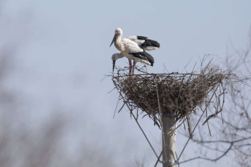 “我们在不同的地点安置了十几个人工巢,目前我们发现一对东方白鹳已经在人工巢上筑巢,为繁殖做着准备。这说明人工辅助的手段很重要,接下来会有更多的东方白鹳在这里筑巢繁殖,恢复20多年前的往日景象。”科尔沁国家级自然保护区管理局副局长于有忠欣喜地说。