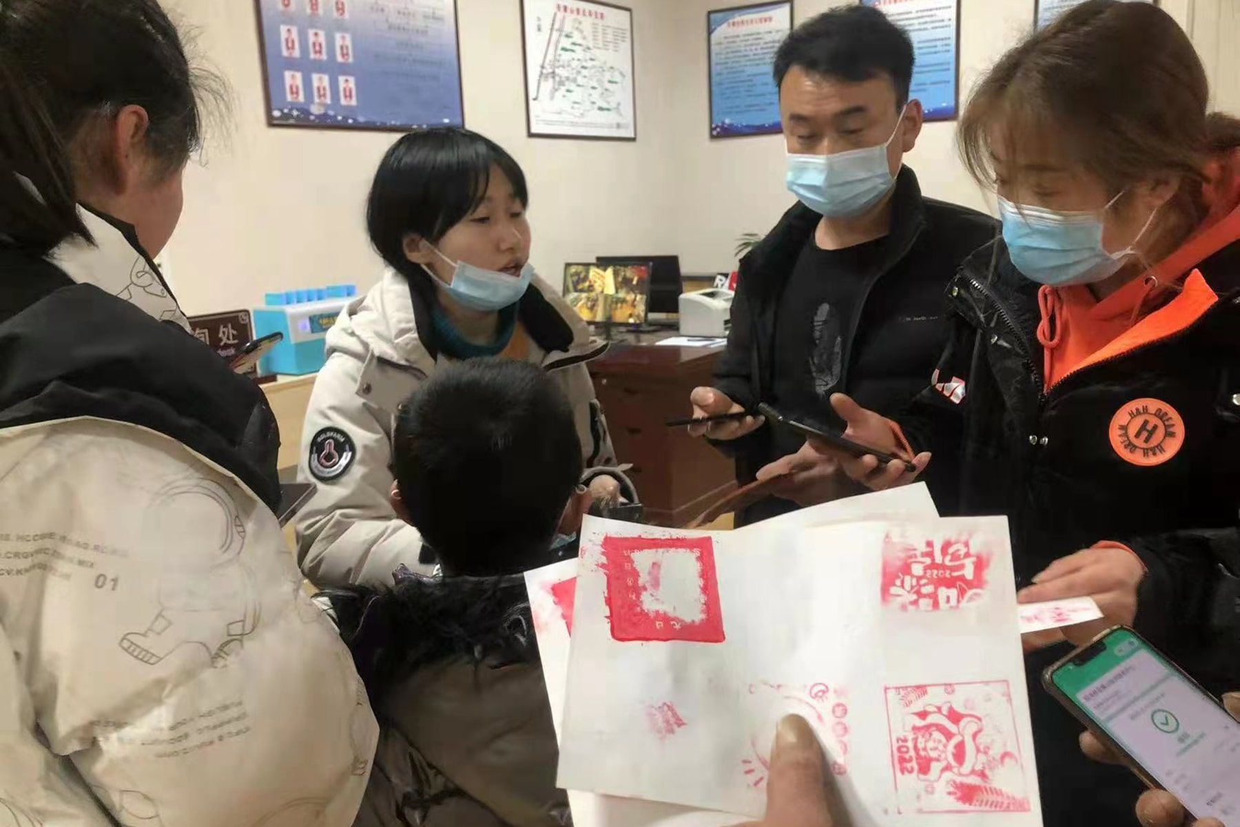 黎敉与小伙伴一起在景区为集赞的游客盖章