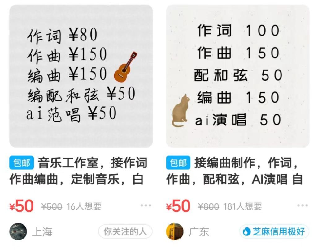一首完全原创的歌曲完全买断版权需要多少钱?这个价位说出来或许令人难以置信,一两百块钱就足够了。价格低廉的首发原创歌曲上哪里能买?也不需要琢磨什么业内人士介绍、专业平台交易,二手货交易平台上就有一大堆。近日来,二手交易市场闲鱼中的“出售原创歌曲”引起不少人注意,这应该算卖服务还是卖商品?又是什么人构成了买卖双方市场?活跃在闲鱼上的原创音乐人凯文和扬子晚报|紫牛新闻记者聊了聊。