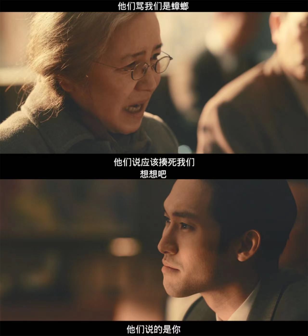 白所门罗告诉老奶奶:“我会对她这么说:别签字。”镜头不断剪切到1933年,在善慈从朝鲜到日本的低等船舱里,他们听到了高等船舱里传来的朝鲜族的歌曲,朝鲜女歌手以死捍卫民族尊严。复调结构,抗日情绪堆叠到高潮。