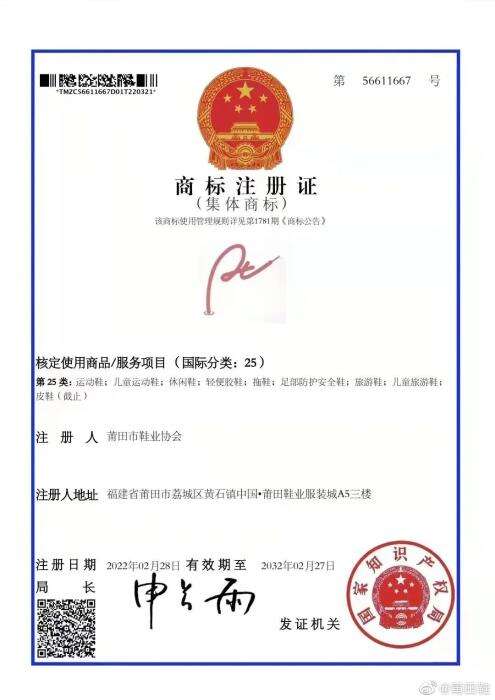 “莆田鞋”有商标了