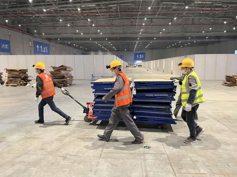 “进场人员务必做好登记,完成新冠病毒抗原检测方可入内”,4月6日晚10点,国家会展中心(上海)改建方舱医院B区2号馆项目现场依旧灯火通明,人员机械往来穿梭,顶着黑眼圈的王盛鑫沙哑着嗓子,叮嘱陆续进场的施工人员。