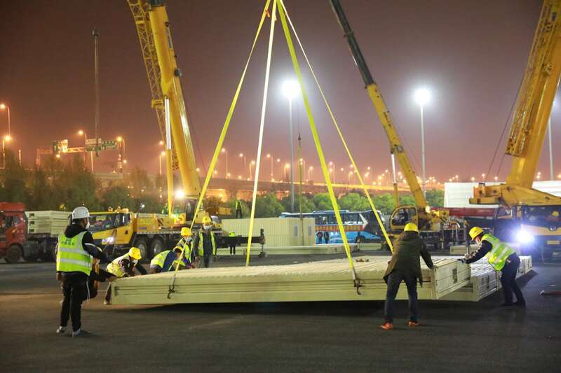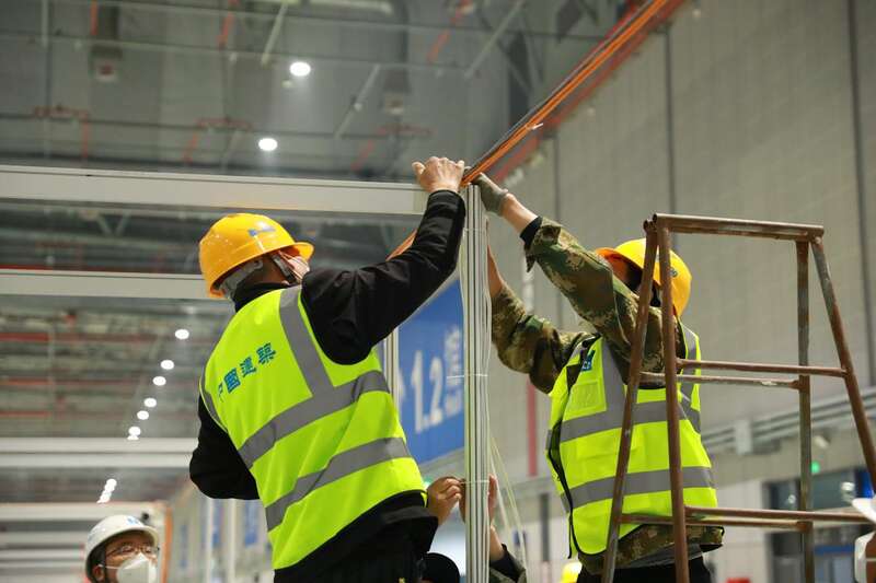 放眼望去,2号馆已方舱林立——这是与疫情赛跑的“中建速度”。