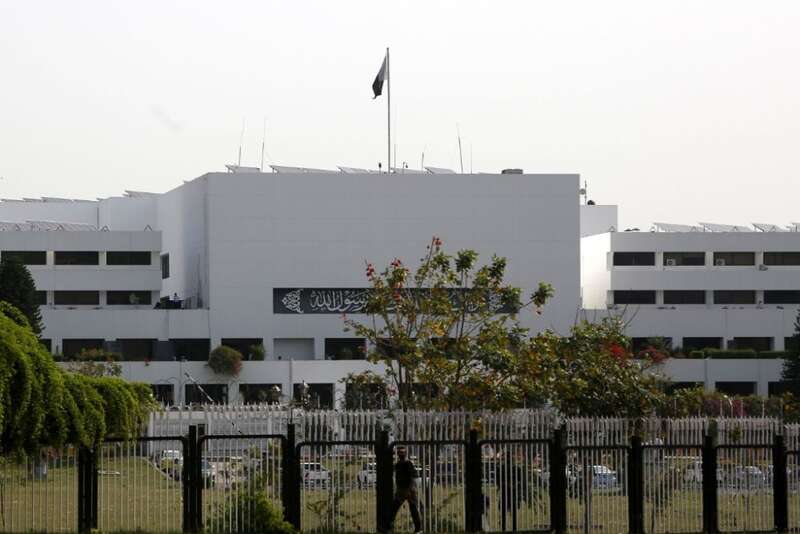 这是4月3日在巴基斯坦首都伊斯兰堡拍摄的国民议会大楼。新华社发(艾哈迈德·卡迈勒摄)