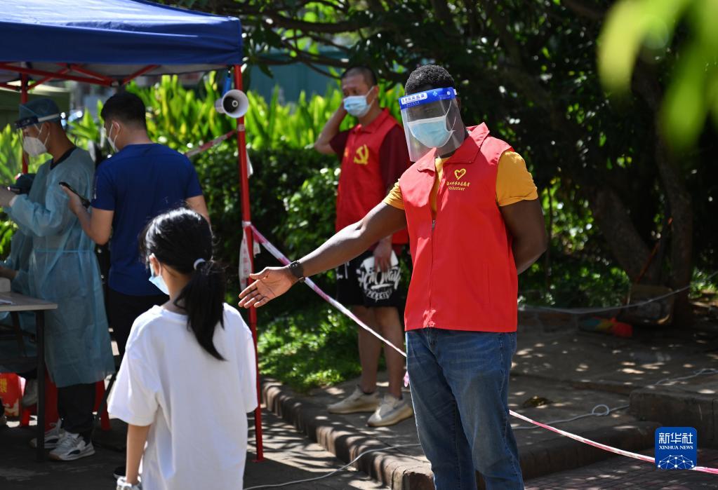 近日来,在海口许多核酸采样便民服务点,都能看到志愿者忙碌的身影,其中有一些“洋面孔”。来自美国、新西兰等国的外国人积极参与志愿服务,用实际行动助力抗疫。