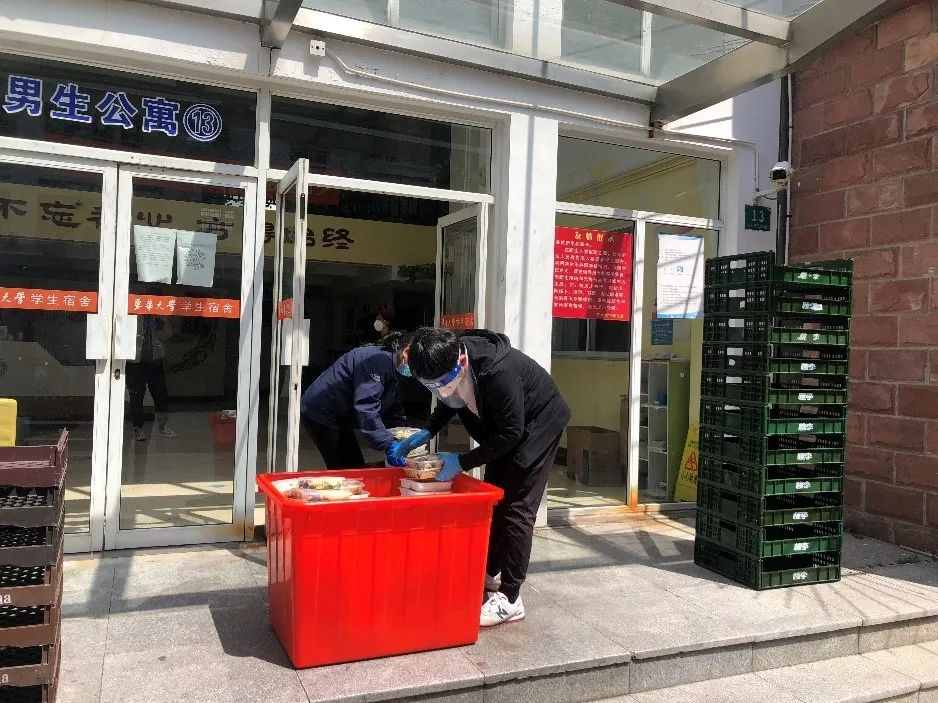 “快点!快点!再快点!一定要让同学们吃到热乎饭!”一天三餐,每到饭点,送饭大军就会有序、准时出现在一栋栋宿舍门口,为同学们送来一盒盒刚刚打包好、热气腾腾的饭菜。截至发稿,两校区志愿者参加送餐人数达1500余人次,共派送餐食30多万份。