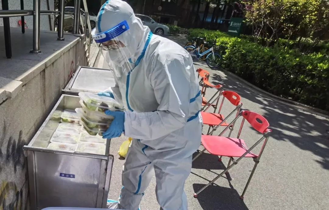管理学院的胡小红、时尚科创中心的林靖两位驻楼志愿者老师和驻楼辅导员高加加,每天为延安路校区8宿近千名同学发放三餐、安排核酸、分发物资、督促测温、配合转运、疏导心理……连夜作战,努力做到防疫工作平稳有序,让同学们放心且温暖。