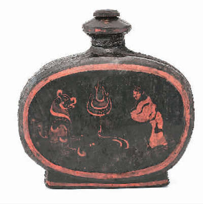 湖北云梦郑家湖战国秦汉墓地出土的扁壶。资料图片/新华社发