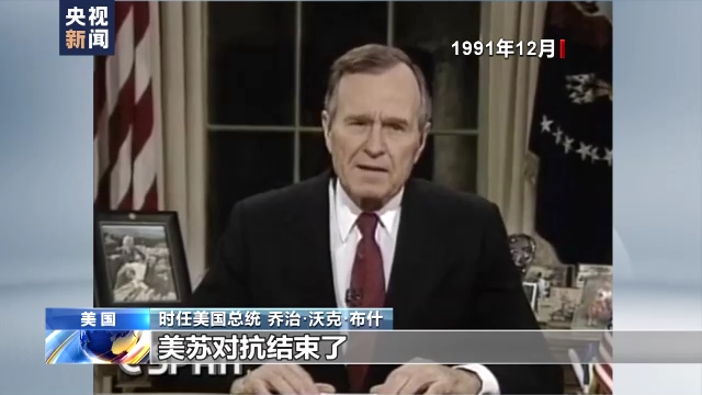 时任美国总统 乔治·沃克·布什:美苏对抗结束了,核威慑虽远未解除,但正在削弱。东欧解放了,苏联已不复存在。